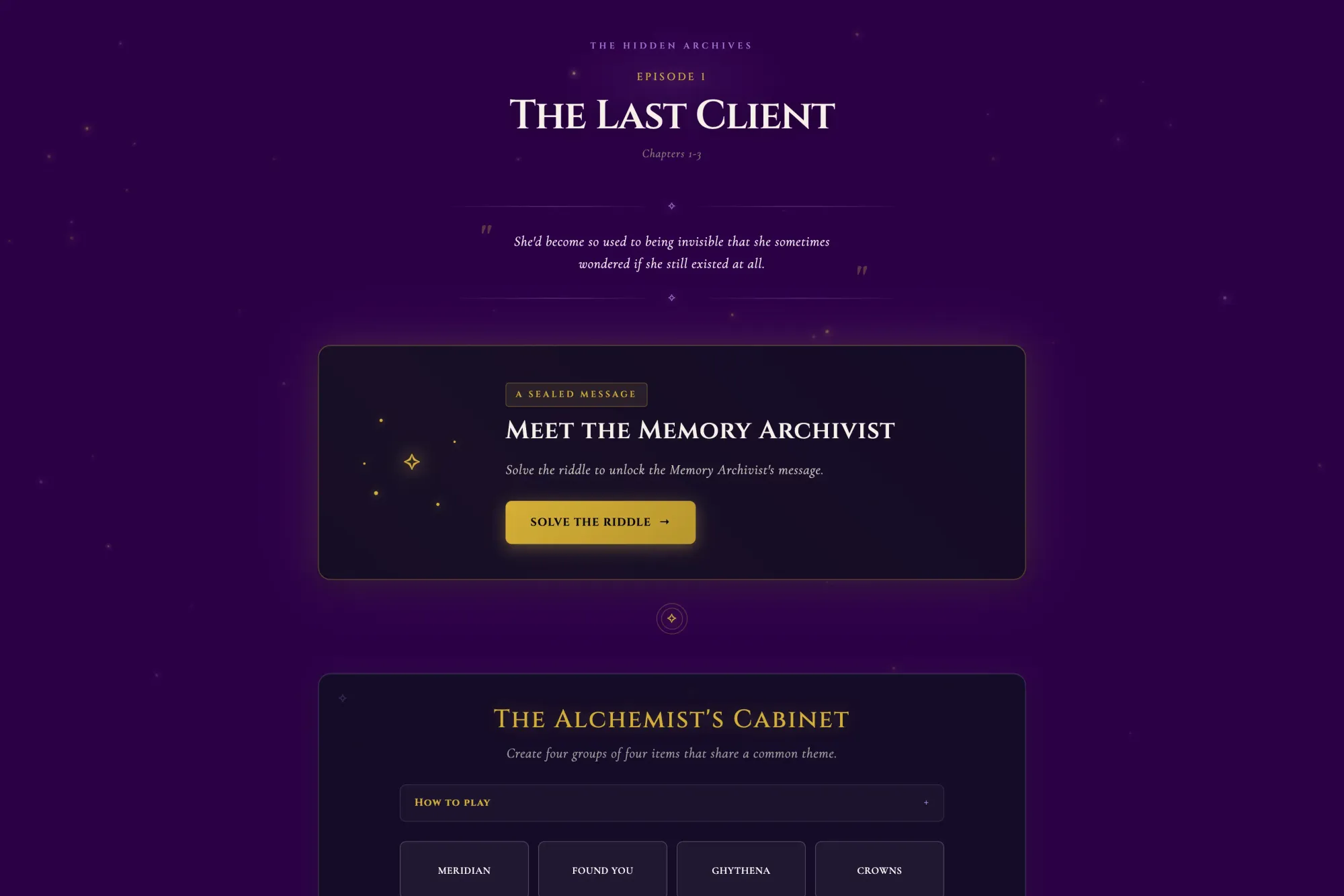 Each episode has its own archive. Each archive has its own riddles, games, and lore. The deeper you go, the more you find.